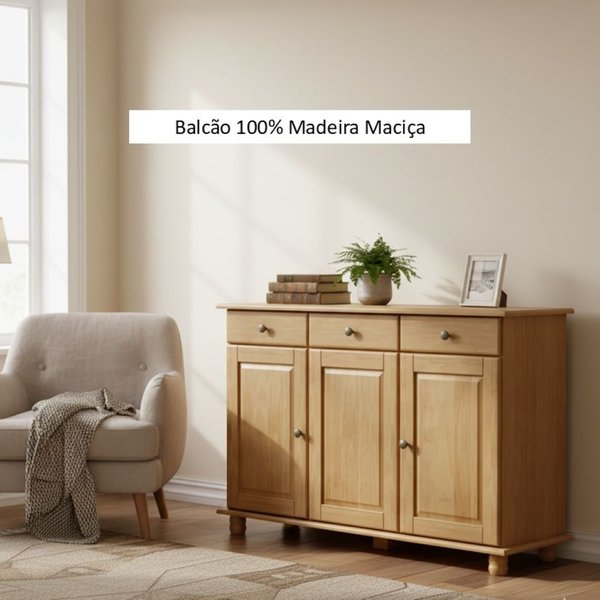 O Balcão possui pés torneados em madeira, agregando ainda mais beleza ao design rústico do produto.