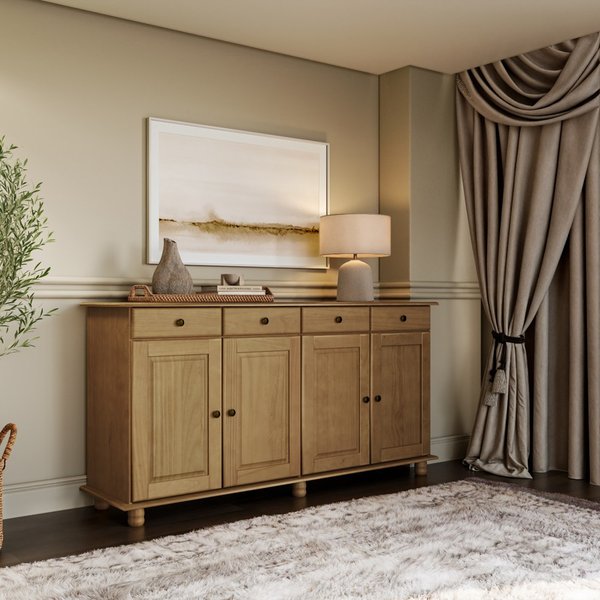 O Balcão possui pés torneados em madeira, agregando ainda mais beleza ao design rústico do produto.