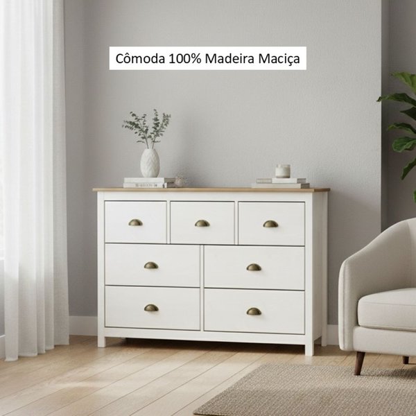 A Cômoda 7 Gavetas da Linha Topázio, assim como os demais produtos da linha, é feita 100% de madeira maciça, garantindo a qualidade padrão dos produtos Finestra Móveis. Os pés alongados, estrutura e o tampo na cor Freijó, expõe os veios e detalhes exclusivos que a madeira proporciona. O design e a escolha das cores tornam o produto elegante e autêntico.
