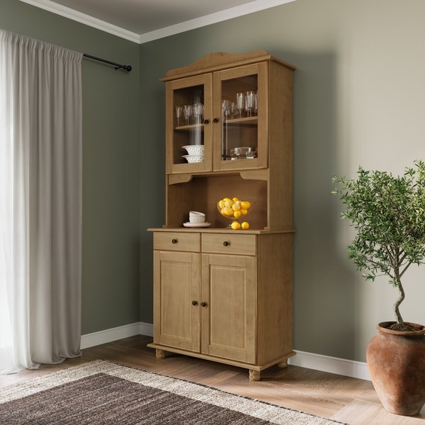 A Cristaleira possui pés torneados em madeira, agregando ainda mais beleza ao design rústico do produto.