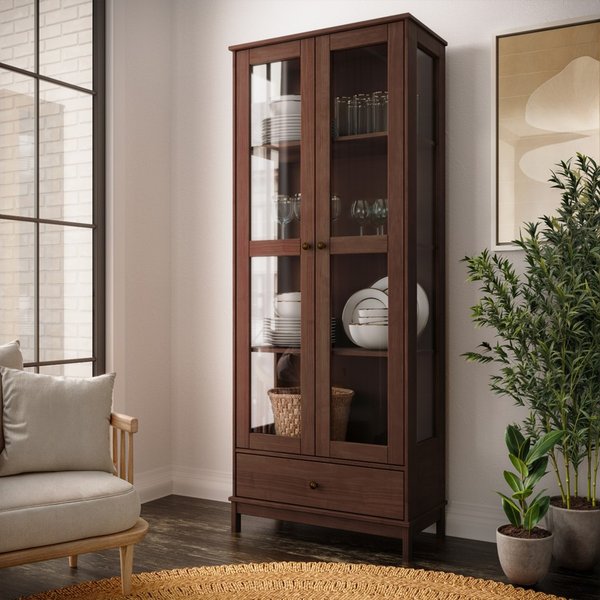 A Cristaleira 2 Portas 1 gaveta da Linha Essência na cor Café é a escolha ideal para quem busca elegância, funcionalidade e acabamento refinado. Produzida em madeira maciça de Pinus Taeda de reflorestamento, combina resistência e beleza natural em um desing atemporal que valoriza o ambiente.