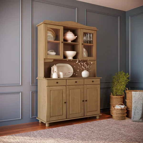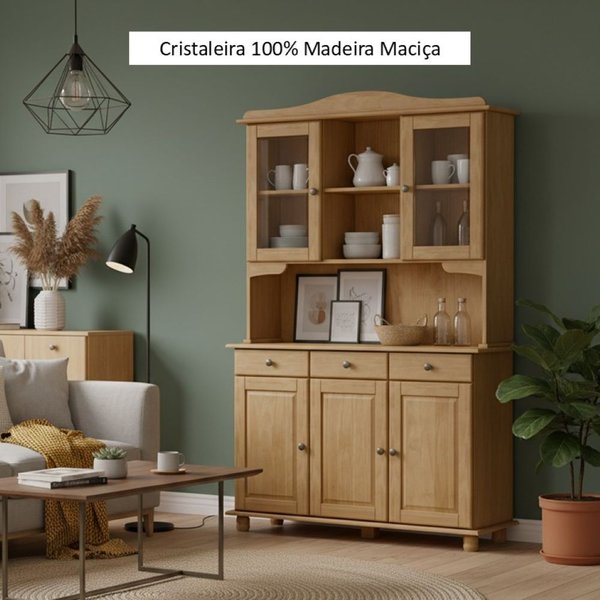 A Cristaleira possui pés torneados em madeira, agregando ainda mais beleza ao design rústico do produto.