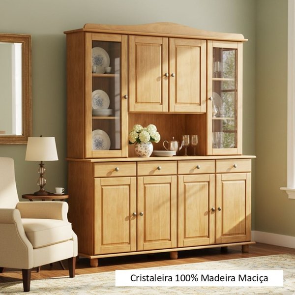 A Cristaleira possui oito portas, sendo as duas laterais superiores com a frente em vidro liso incolor, proporcionando visibilidade para seu interior, criando mais possibilidades de uso e aprimorando o seu aspecto decorativo. Além da qualidade e beleza, o produto possui diversas funcionalidades.