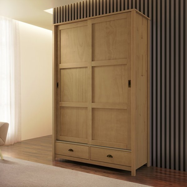 O Guarda Roupa 2 Portas de Correr da Linha Topázio- Finestra Móveis, assim como os demais produtos da linha, é produzido 100% de madeira maciça de pinus de reflorestamento. Os pés, a estrutura e divisórias internas são na cor Branco Lavado, e o tampo, na cor Freijó, destacando a cor e detalhes característicos da madeira. O produto possui 2 Portas e 2 Gavetas, oferecendo um ótimo espaço interno.