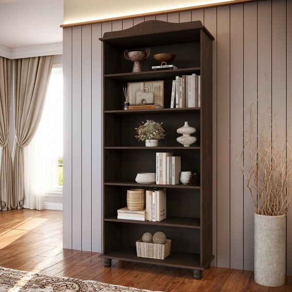 Possui 5 prateleiras em madeira maciça, oferecendo um amplo espaço para acomodar seus livros e itens decorativos.