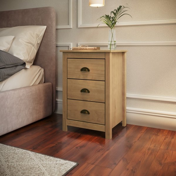 A Mesa de Cabeceira 3 Gavetas da Linha Topázio é um produto 100% de madeira maciça, o que garante sua durabilidade. A estrutura e o tampo são na cor Freijó, contrastando e realçando os detalhes únicos que a madeira oferece.