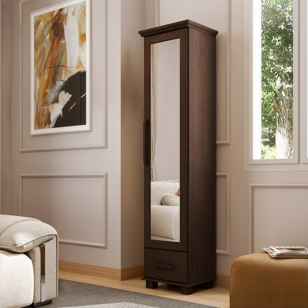 Um design clássico traz para o ambiente detalhes e qualidade além do imaginável. Uma beleza excepcional aliada a altos padrões de elegância e resistência, transmitem o melhor que a Linha Ouro pode oferecer. A Sapateira com Espelho da Linha Ouro é feita 100% de madeira maciça, assim como os demais produtos da Linha. O acabamento é em Verniz Acetinado PU e UV, na cor Café. Além da qualidade e durabilidade que a madeira proporciona, o produto oferece ótimo espaço interno para organização dos seus calçados ou demais itens, conforme sua preferência, oferecendo muita praticidade e versatilidade.
