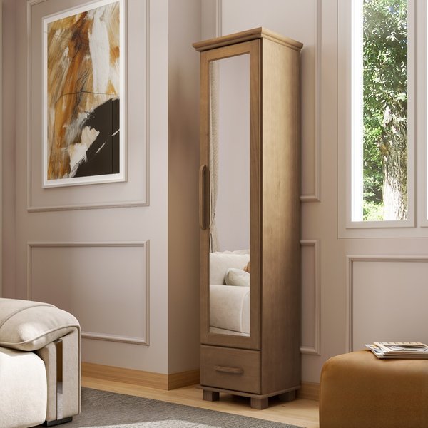 Um design clássico traz para o ambiente detalhes e qualidade além do imaginável. Uma beleza excepcional aliada a altos padrões de elegância e resistência, transmitem o melhor que a Linha Ouro pode oferecer. A Sapateira com Espelho da Linha Ouro é feita 100% de madeira maciça, assim como os demais produtos da Linha. O acabamento é em Verniz Acetinado PU e UV, na cor Freijó. Além da qualidade e durabilidade que a madeira proporciona, o produto oferece ótimo espaço interno para organização dos seus calçados ou demais itens, conforme sua preferência, oferecendo muita praticidade e versatilidade.